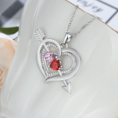 Pendentif double cœur personnalisé avec pierres de naissance