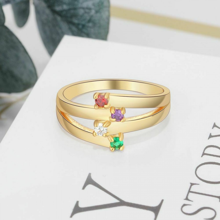Cette magnifique bague famille est un bijou familiale parfait. Son design unique, et ses quatre magnifiques pierres de naissance, fait de véritables cristaux de Swarovski, sauront comblé le cœur de toutes les mamans et grand-mamans. Elle est robuste et sa conception fait d'elle une bague résistante aux travaux quotidiens. Ses pierres de naissance entrelacées rendent se bijou très populaire auprès des mamans et grands-mamans.