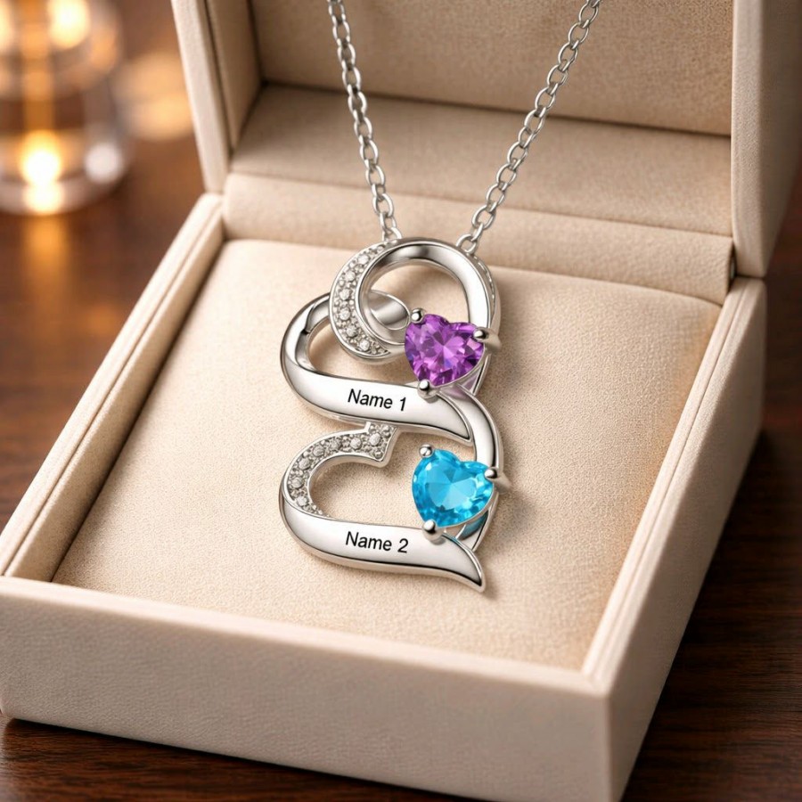 Ce pendentif personnalisé pour femme est un pendentif discret et passe-partout. Sa forme de cœur, avec ses petits zircons clairs, personnalisé avec de superbes pierres de naissance fait de véritables Swarovskis, ce bijou est idéal pour toutes les femmes. Il saura comblé votre copine, votre maman ou tous autre personne qui recevra ce magnifique bijou.
