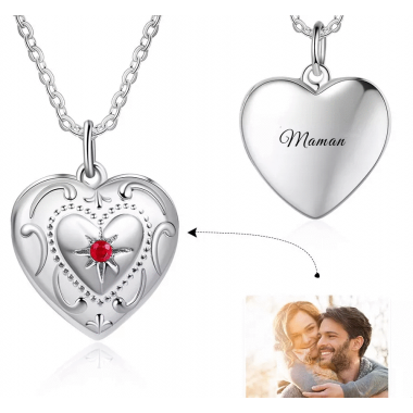 Les bijoux les plus mémorables sont sans contredit les colliers porte-photo. Ce superbe cœur ornementale est parfait pour garder avec soi les gens que vous aimez. Simple et raffiné, il est un pendentif souvenir incontournable. Ce collier est tout simplement sublime. Ajoutez la photo de votre choix et votre pierre de naissance, pour un cadeau parfait pour toutes les occasions. Il représente l'amour infini, le souvenir inoubliable et les moments importants. Il saura comblé, toutes les femmes de tous âges. Ce magnifique bijou touchera le cœur de la personne qui le recevra. C'est un cadeau parfait pour elles. Avec son look sobre, il sera un souvenir unique et personnel. Il est délicat et étincelant convenant à toutes les femmes et adolescentes. Pour un cadeau original et personnel.
